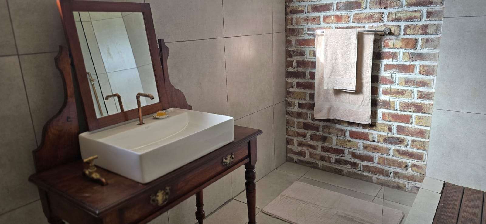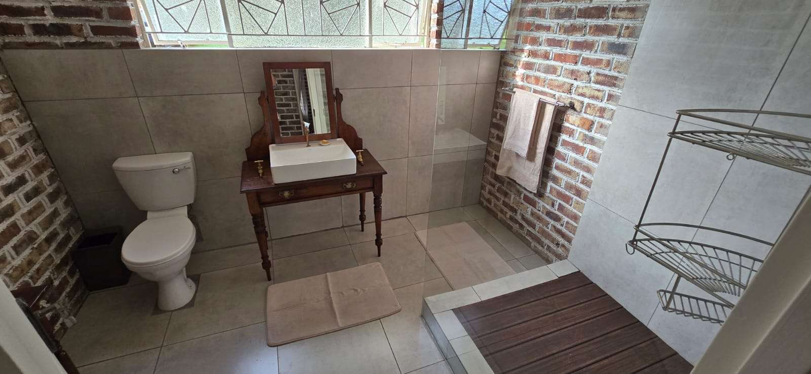 • Modern en-suite bathroom with shower and another separate bathroom with a shower.