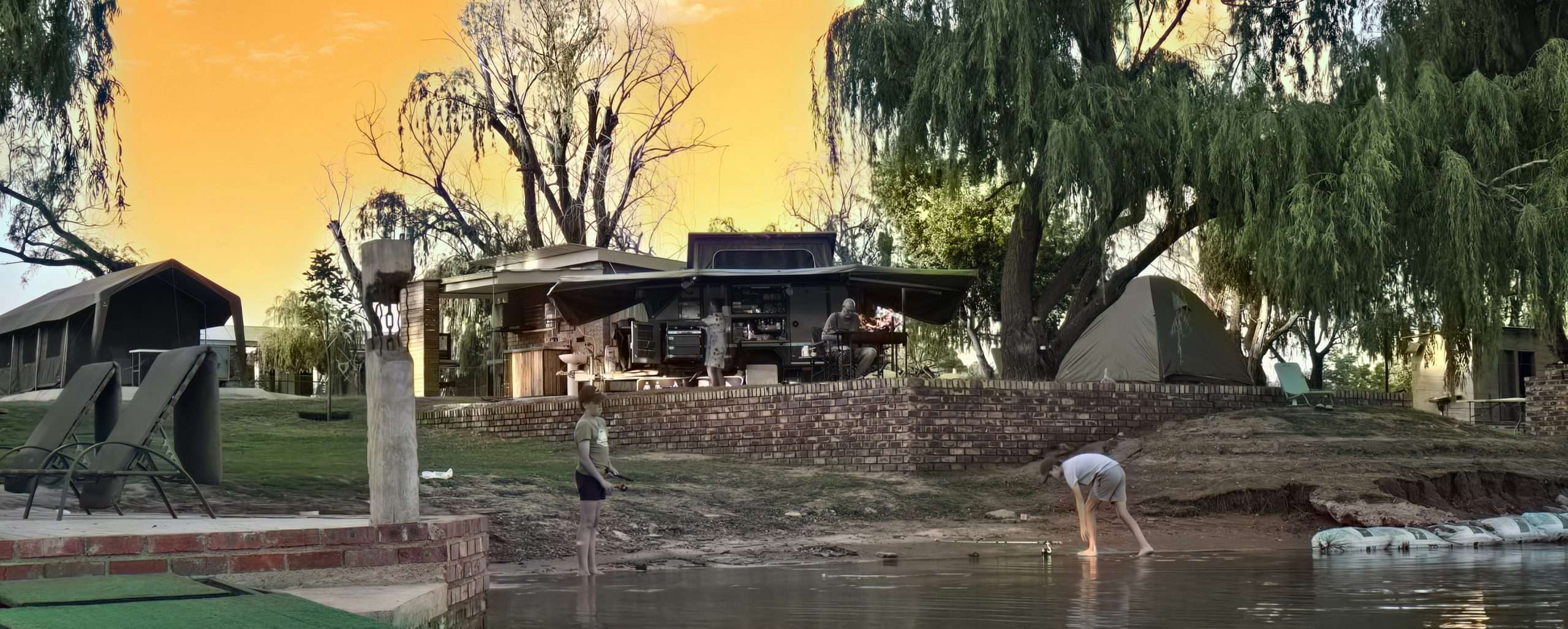 Tent and Caravan Site with large, well-defined and prepared areas for your tent or caravan, along with ample parking and your own electricity point. Each campsite overlooks the Vaal River. The maximum number of people allowed per tent site is six.