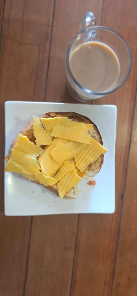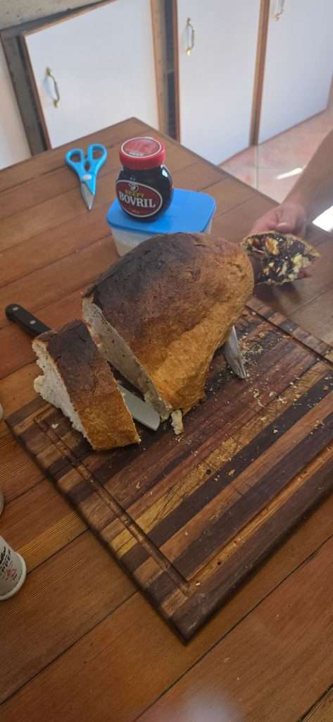 Look at this. Freshly baked bread, still steaming out the oven. Baked by the daughter I call my wife just like it used to be during those rare, high moments when I visited this meaningful piece of earth. Real bread. Real farm butter. Apricot jam. And a strong cup of coffee.